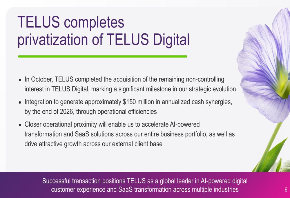 A significant development during the quarter was TELUS’s completion of the privatization of TELUS Digital in October. The company expects this integration to generate approximately $150 million in annualized cash synergies by the end of 2026 through operational efficiencies.